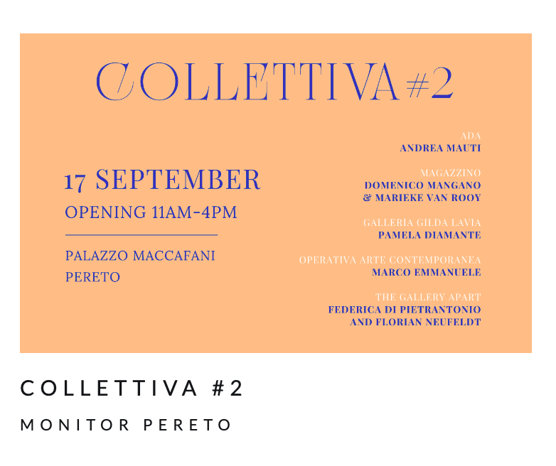 ADA / Andrea Mauti, Galleria Gilda Lavia / Pamela Diamante, MAGAZZINO / Domenico Mangano & Marieke van Rooy, Operativa arte contemporanea / Marco Emmanuele, The Gallery Apart / Federica Di Pietrantonio e Florian Neufeldt